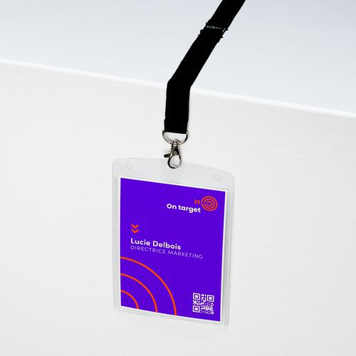 | Intitulé du produit | Pochettes badge A6 avec feuilles et lacets, Coloris: Blanc, Type de fixations: Tour de cou mousqueton |