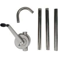 Pompe manuelle rotative inox avec un débit calibré de 0.24 litre par rotation, cette pompe offre une précision cruciale pour le dosage et le remplissage de petits ou moyens contenants.