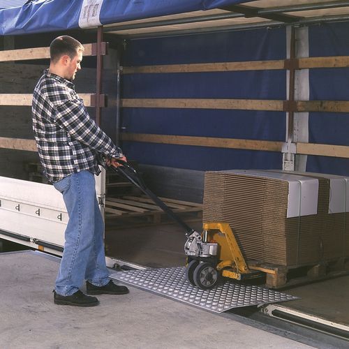 Pour charger et décharger des véhicules avec des transpalettes à main, des conteneurs mobiles, des...