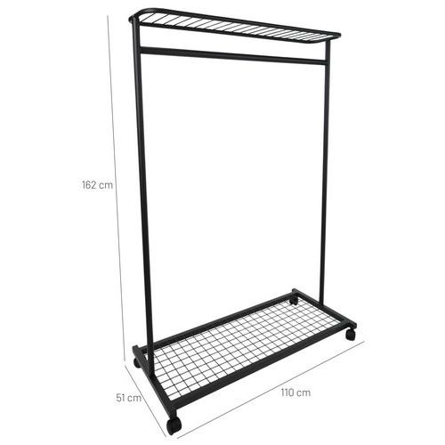 Portant mobile Smart, Hauteur: 162 cm, Largeur: 110 cm, Coloris: Noir, Type de produit: Penderie mobile