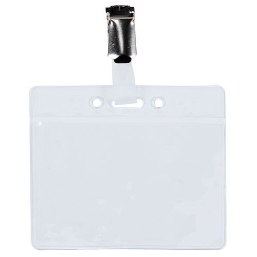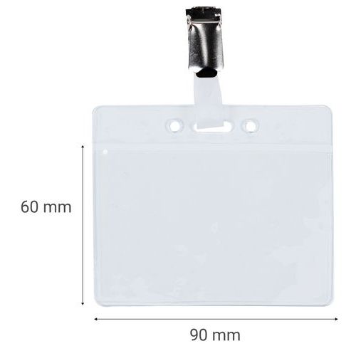 Porte-badge horizontal avec clip, Coloris: Transparent, Type de fixations: Clip, Longueurs: 90 mm