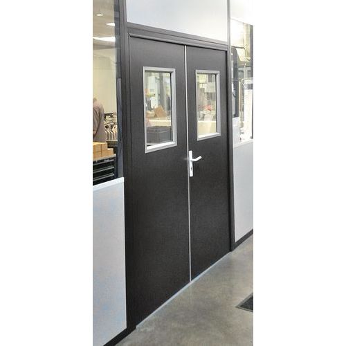 Porte battante pour cloisons d'atelier tôle d'acier ou mélaminé - Panneau semi-vitré - Hauteur 2,5 m