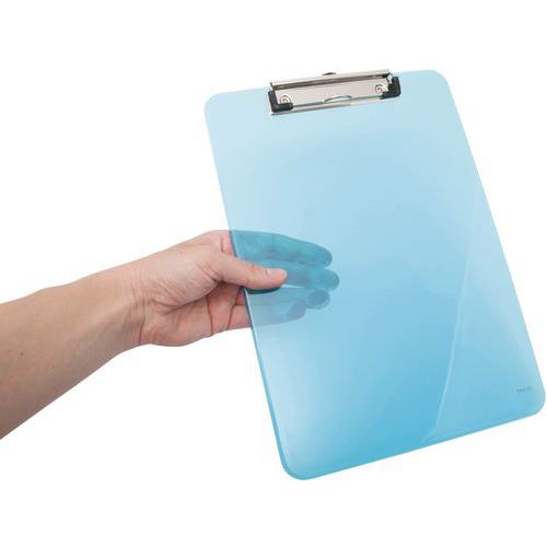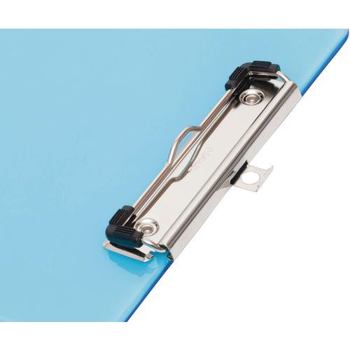Porte-bloc A4 neon PS transparent portrait avec pince à arceau, Coloris: Bleu