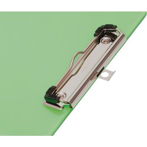 Porte-bloc A4 neon PS transparent portrait avec pince à arceau, Coloris: Vert