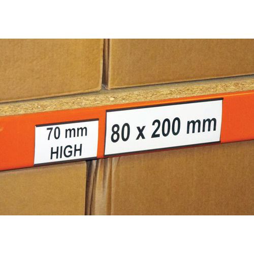 Porte-étiquette en plastique blanc. Modification rapide et aisée en remplaçant ou en retournant l’étiquette. Support magnétique facile à déplacer. Peut-être utilisé dans les chambres froides. Extrusion magnétique flexible comprenant de la ferrite de strontium dans un liant de caoutchouc synthétique et plusieurs pôles magnétiques sur une face.