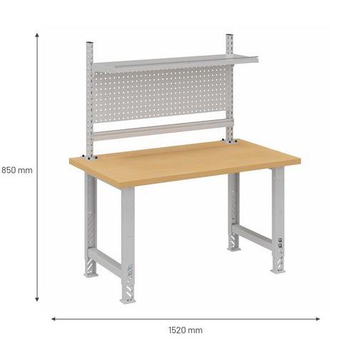 | Intitulé du produit | Poste de montage réglable avec tablette, Charge maxi: 500 kg, Hauteur: 850 mm, Largeur: 1520 mm |