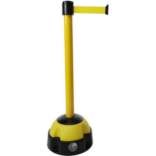 Poteau à sangle sur socle balise lestable avec sable ou gravier.