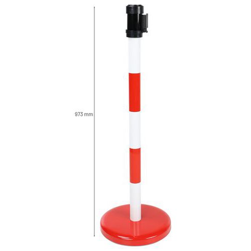 Sangle rétractable pouvant être réceptionnée sur un autre poteau ou sur un récepteur mural (non fourni).