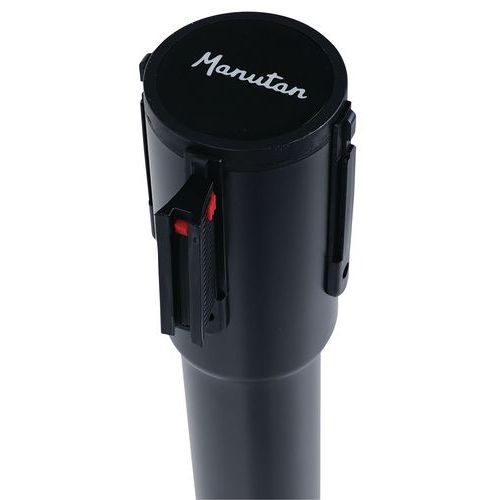 Poteau noir à sangle 5 m - Acier - Socle à roulettes - Manutan Expert