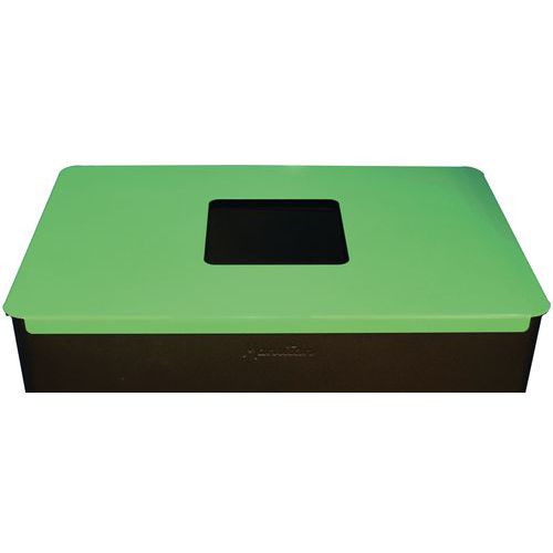 Poubelle de tri avec couvercle amovible. Tri sélectif facilité par la couleur et à l'ouverture calibrée. Poubelle avec Kit étriers intégré pour maintien du sac. Mise en place et retrait du sac facile.