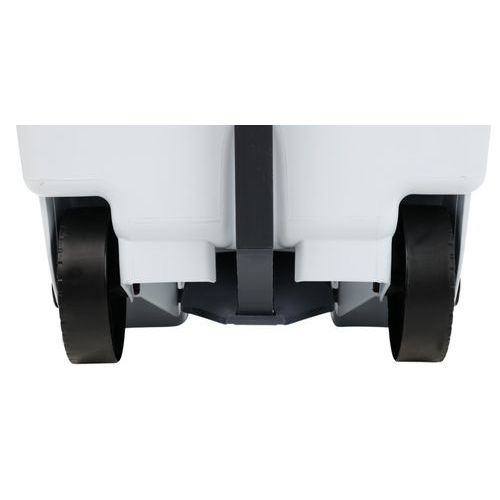 Poubelle mobile Manutan maniable grâce à ces 2 roues lisse et sa poignée de transport. Ouverture facile via large pédale en façade. Tri sélectif grâce aux couvercles de couleurs. Facile à nettoyer.