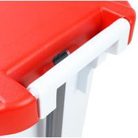 Poubelle mobile Manutan maniable grâce à ces 2 roues lisse et sa poignée de transport. Ouverture facile via large pédale en façade. Tri sélectif grâce aux couvercles de couleurs. Facile à nettoyer. Fabriqué en UE Garantie client : 10 ans HACCP