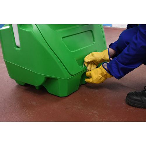 Couvercle incliné : écoulement aisé de l'eau de pluie.