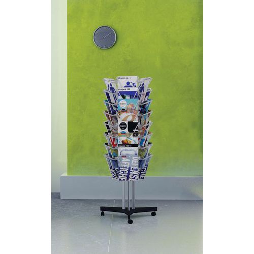 | Intitulé du produit | Présentoir mobile Filario 3 faces, Nb de tablettes: 24, Coloris: Gris, Largeur hors tout: 64 cm |