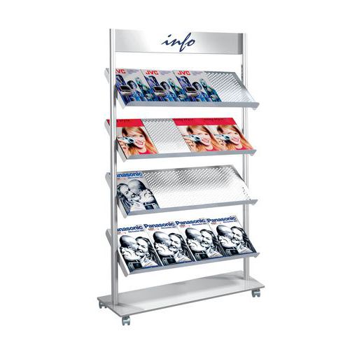 | Intitulé du produit | Présentoir mobile pour brochures Rico, Nb de tablettes: 4, Coloris: Gris, Type de produit: 16 x A4 |