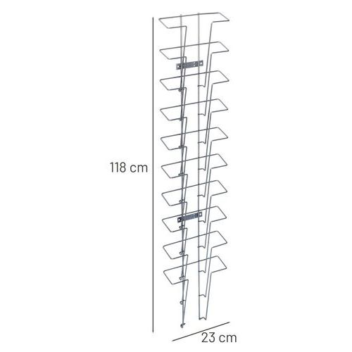Présentoir mural pour brochures A4, Nb de compartiments: 10, Coloris: Gris, Largeur hors tout: 23 cm
