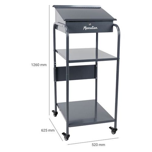 Pupitre d'atelier mobile, Largeur hors tout: 520 mm, Profondeur hors tout: 625 mm, Hauteur hors tout: 1260 mm