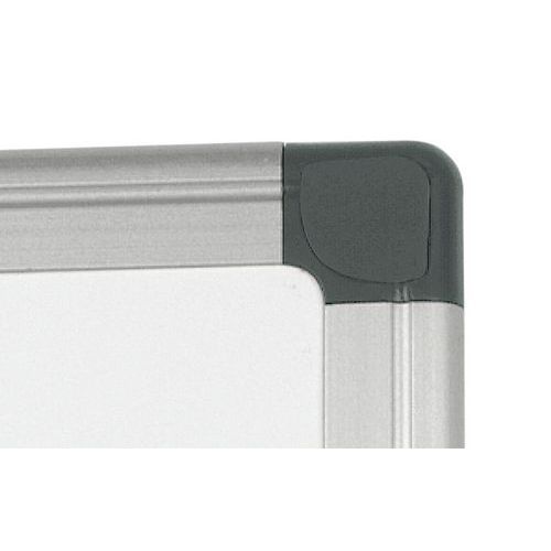 Tableau blanc aimanté laqué de haute qualité. Grand confort d'écriture via surface en acier laqué. Dos du tableau softboard. Peut être utilisé pour écrire ou pour afficher grâce au revêtement magnétique. Résistant et élégant via cadre en aluminium. Pratique grâce à sa goulotte de rangement inclus. Facilement effaçable à sec. Fixation murale simple et rapide. 4 perçages arrière aux 4 angles (diamètre 3.5 mm). Trous de fixation cachés par cache-vis plastique. Magnétique Garantie client : 10 ans