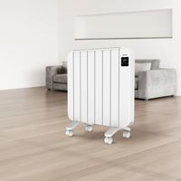 Corps en aluminium. Utilisation murale possible. Ecran LED avec commande tactile. Réglage numérique de la température (5–30°C). Mode ECO/Confort/Antigel. Programmable. Fonction fenêtre ouverte. Protection de sécurité contre la surchauffe. Protection anti basculement. Garantie client : 2 ans