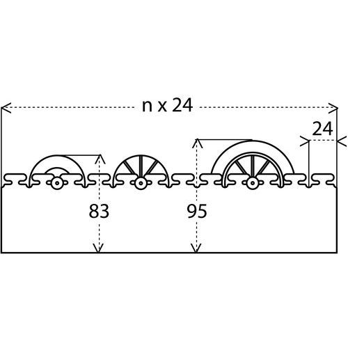 Rail à profil porteur perforé au pas de 24 mm, pour fixation.