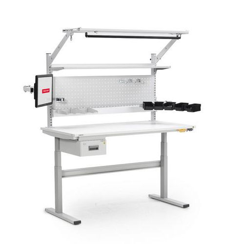 Toutes les lampes, à l'exception de la lampe loupe Treston Wave LED ESD et de la lampe latérale Naturlite LED Wing 500, sont fixées aux rails d'éclairage et d'équilibrage.