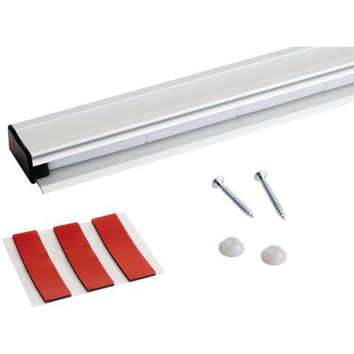 - Profilé en aluminium avec roulettes en plastique servant de pince à papier.