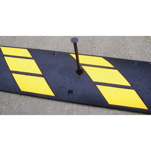 Ralentisseur monobloc à module long. Bandes 3 M classe 2. Équipé de 8 réflecteurs. Matériau caoutchouc résistant aux UV.