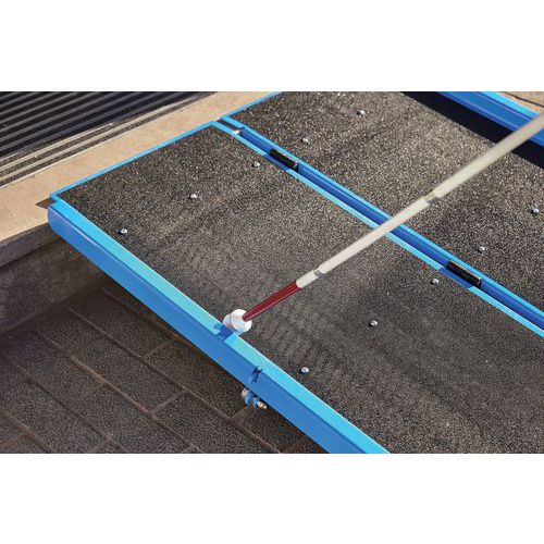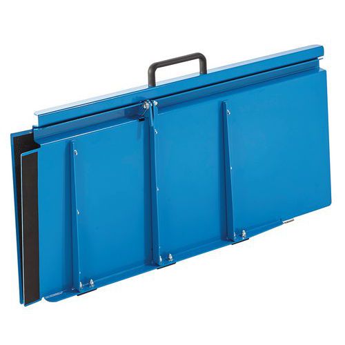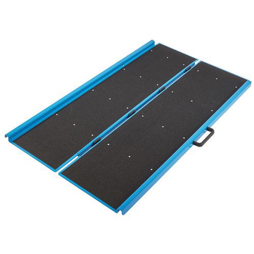 Rampe d’accès pour chariots, fauteuils roulants, etc. Pratique à ranger, la rampe est repliable en 2. Equipée d'un revêtement antidérapant.