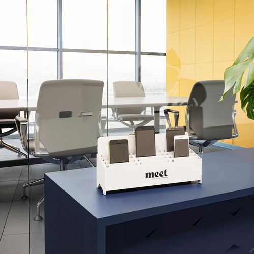 | Intitulé du produit | Rangement pour téléphone 12 cases, Matériau: Polystyrène choc, Coloris: Gris, Profondeur hors tout: 8.2 cm |