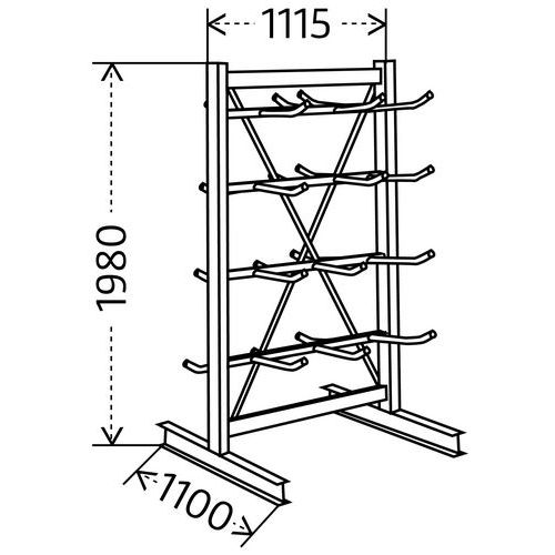 Rayonnage à bras pour bobines Canti-bobin's, Charge maxi par niveau: 60 kg, Hauteur: 1980 mm