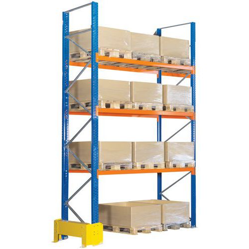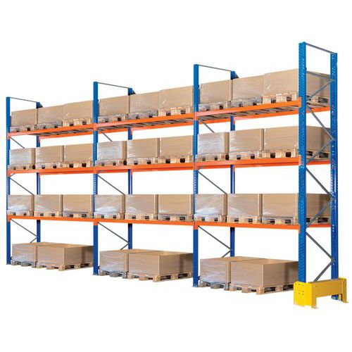 - Rayonnage à palettes pour manutention manuelle ou à l'aide de transpalette/chariot.