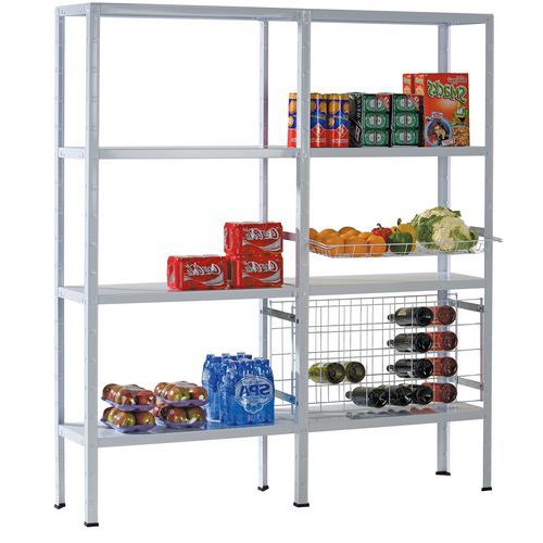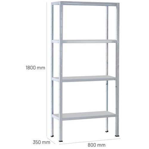 Rayonnage acier galvanisé Multiline, Charge maxi par tablette: 60 kg, Hauteur: 1800 mm, Nb de tablettes: 4
