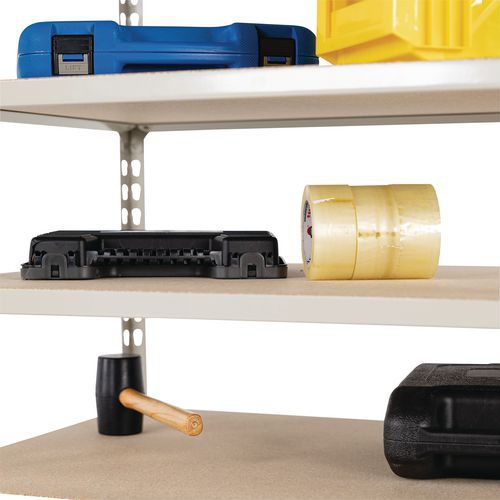 Rayonnage simple et ultra-solide pour le stockage de toutes pièces d'archives. Tablette pleine bois parfaite pour entreposer caisses, boîtes et/ou classeurs. Belle finition peinte époxy, facile d'entretien, au choix : bleu ou gris clair. Étagère d'entrepôt de montage aisée, sans l'aide d'outils spécifiques.