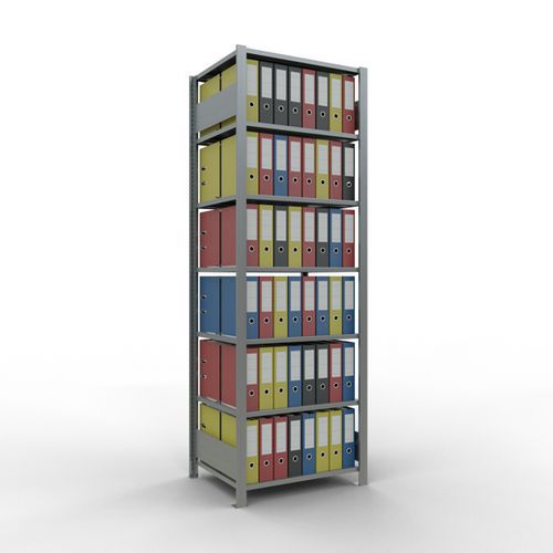 Rayonnage bureau de belle finition pour charge légère. Tablette pleine tôlée pour toutes natures d'objets. Butée centrale pour délimitation de chaque face. Montant plein tôlé sans perforation face avant. Pied de protection pour préserver les sols. Montage sans outils, par système de clip.