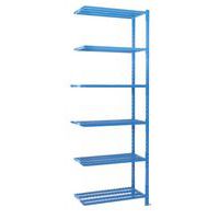 Rayonnage acier solide et stable avec grande capacité de charge. Fiable lors d’incendie : entièrement aéré avec tablettes grillagées. Rayonnage d'extension aisées avec ajout de 1 ou + éléments suivants.