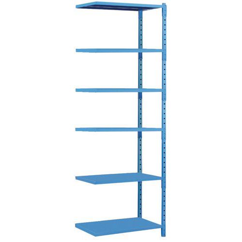 Rayonnage très stable avec capacité de charge élevée, jusqu’à 2,5 t. Extension aisée par l'ajout de 1 ou plusieurs éléments suivants. Avec tablette fermée pour empêcher la chute d’objets. Rayonnage lourd, facile à monter et à agrandir.