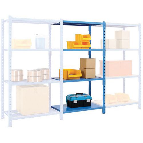 Rayonnage très stable avec capacité de charge élevée, jusqu’à 2,5 t. Extension aisée par l'ajout de 1 ou plusieurs éléments suivants. Avec tablette fermée pour empêcher la chute d’objets. Rayonnage lourd, facile à monter et à agrandir.