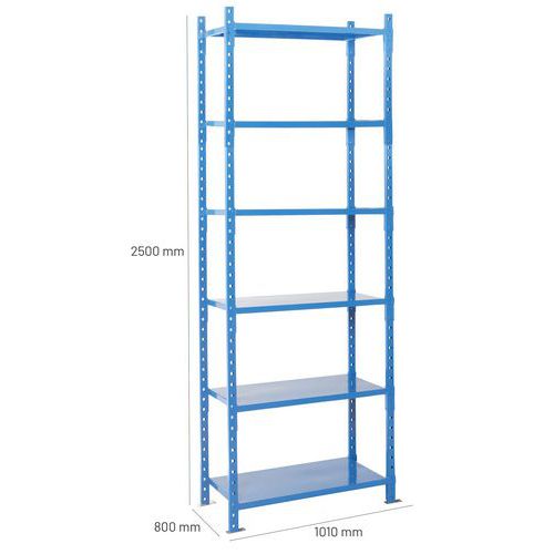 Rayonnage très stable avec capacité de charge élevée, jusqu’à 2,5 t. Extension aisée par l'ajout de 1 ou plusieurs éléments suivants. Avec tablette fermée pour empêcher la chute d’objets. Rayonnage lourd, facile à monter et à agrandir.