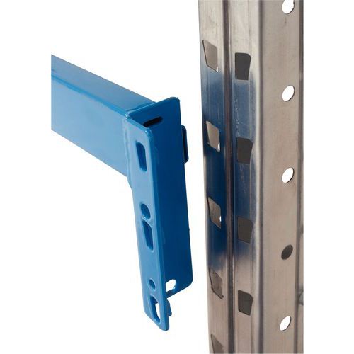 Solide rayonnage d'entrepôt acier à très larges compartiments. Nombreux profils disponibles pour de multiples applications. Lisse à feuillure avec encoche pour accroche des traverses. Échelle avec montants profil bouteille perforée en façade. Tablette galvanisée haute résistance graisse et humidité. Tablette galvanisée : grande résistance à l'humidité ! Rayonnage d'extension aisée et très facile à assembler.