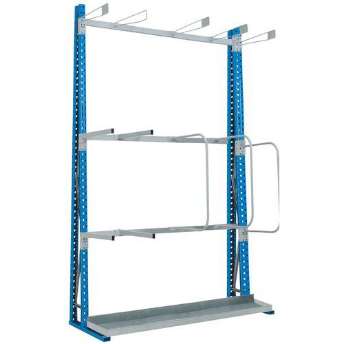 Rayonnage simple et double face pour stockage vertical des marchandises longues. Gain de place avec double face : optimisation du stockage dans les espaces réduits. Solide structure acier, extensible aisément avec 1 ou plusieurs kits élément suivant. Stockez profilés, poutres et autres produits hauts et longs !
