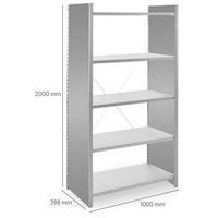 Rayonnage galva Multi-Fix, Charge maxi par tablette: 180 kg, Hauteur: 2000 mm, Nb de tablettes: 5 Rayonnage galva Multi-Fix, Charge maxi par tablette: 180 kg, Hauteur: 2000 mm, Nb de tablettes: 5