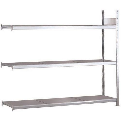 Solide rayonnage d'entrepôt à niveau plein acier tôlé. Stable sans croisillon, accessible d'un côté et de l'autre. Parfait en combinaison avec d’autres rayonnages Easy-Fix. Haute résistance à la corrosion avec finition acier galvanisé.