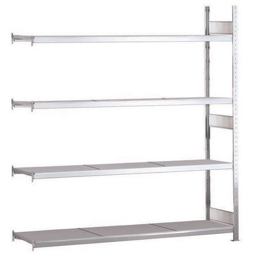 Solide rayonnage d'entrepôt à niveau plein acier tôlé. Stable sans croisillon, accessible d'un côté et de l'autre. Parfait en combinaison avec d’autres rayonnages Easy-Fix. Haute résistance à la corrosion avec finition acier galvanisé.