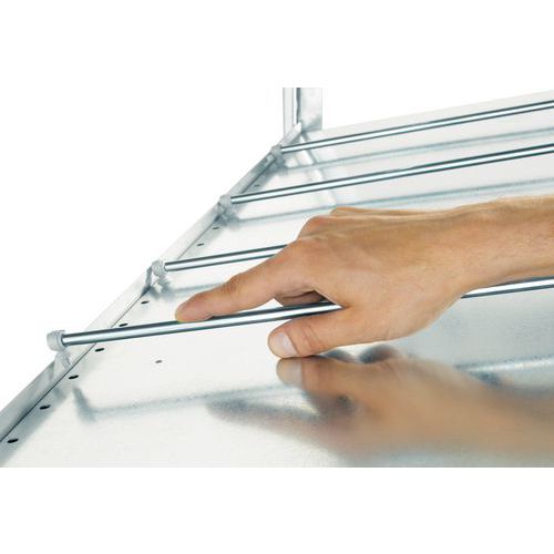 Tablette renforcée par lisse, lisse avant relevée de 15 mm pour anticiper toute chute de marchandises.