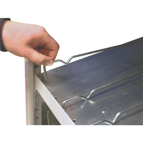 Tablette renforcée par lisse, lisse avant relevée de 15 mm pour anticiper toute chute de marchandises.