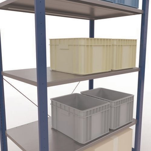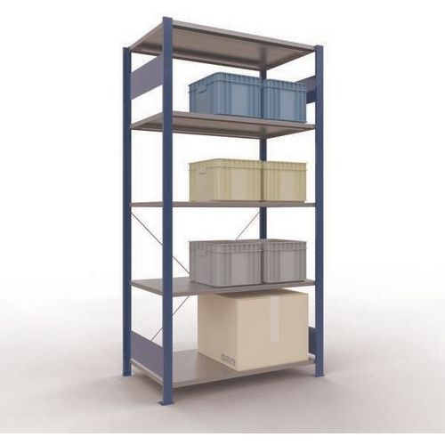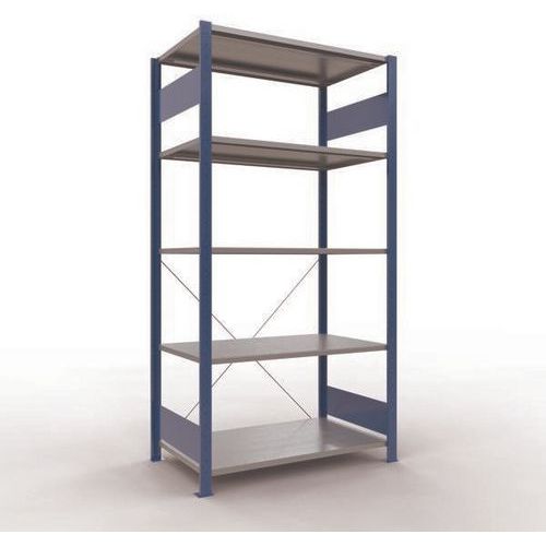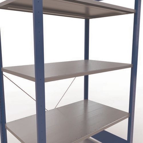 Système de rayonnage robuste et très complet avec belle finition peinte époxy, gris ou bleu. Tablettes pleines acier tôlé pouvant supporter des marchandises de multiples dimensions. Étagère industrielle facile et rapide à monter par emboîtement, sans outillage particulier. Extension de rayonnage aisée avec l'adjonction de 1 ou plusieurs éléments suivants.