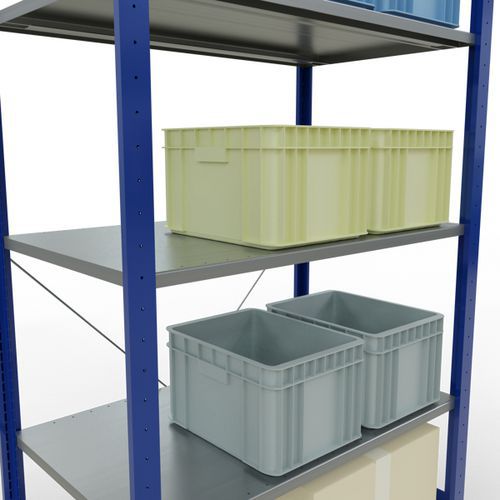 Système de rayonnage robuste et très complet avec belle finition peinte époxy, gris ou bleu. Tablettes pleines acier tôlé pouvant supporter des marchandises de multiples dimensions. Étagère industrielle facile et rapide à monter par emboîtement, sans outillage particulier. Extension de rayonnage aisée avec l'adjonction de 1 ou plusieurs éléments suivants.