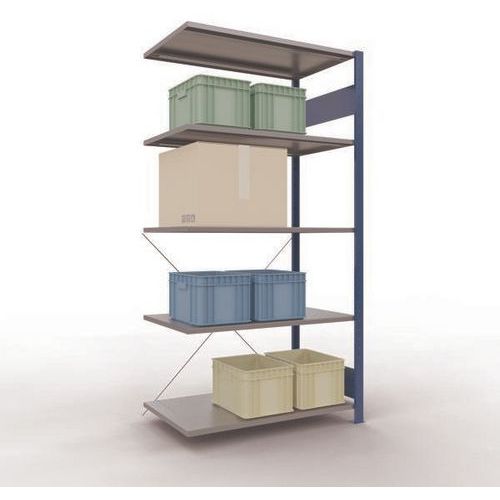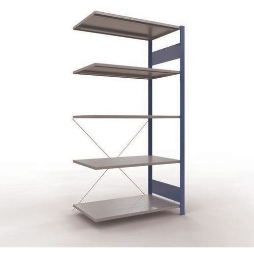 Système de rayonnage robuste et très complet avec belle finition peinte époxy, gris ou bleu. Tablettes pleines acier tôlé pouvant supporter des marchandises de multiples dimensions. Étagère industrielle facile et rapide à monter par emboîtement, sans outillage particulier. Extension de rayonnage aisée avec l'adjonction de 1 ou plusieurs éléments suivants.