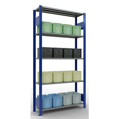 Système de rayonnage robuste et très complet avec belle finition peinte époxy, gris ou bleu. Tablettes pleines acier tôlé pouvant supporter des marchandises de multiples dimensions. Étagère industrielle facile et rapide à monter par emboîtement, sans outillage particulier. Extension de rayonnage aisée avec l'adjonction de 1 ou plusieurs éléments suivants.