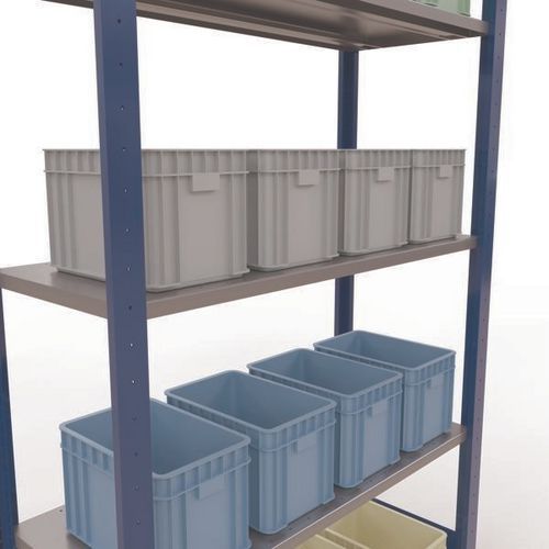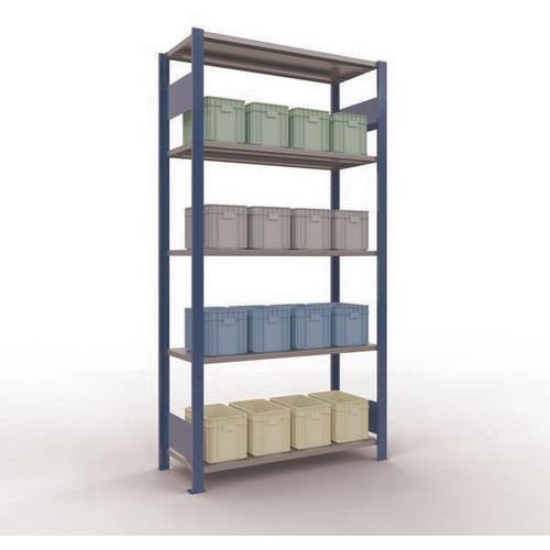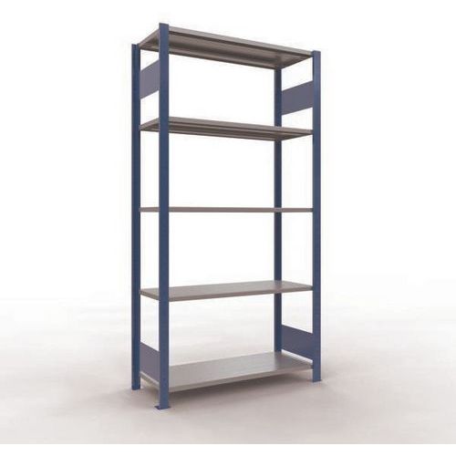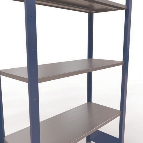 Système de rayonnage robuste et très complet avec belle finition peinte époxy, gris ou bleu. Tablettes pleines acier tôlé pouvant supporter des marchandises de multiples dimensions. Étagère industrielle facile et rapide à monter par emboîtement, sans outillage particulier. Extension de rayonnage aisée avec l'adjonction de 1 ou plusieurs éléments suivants.
